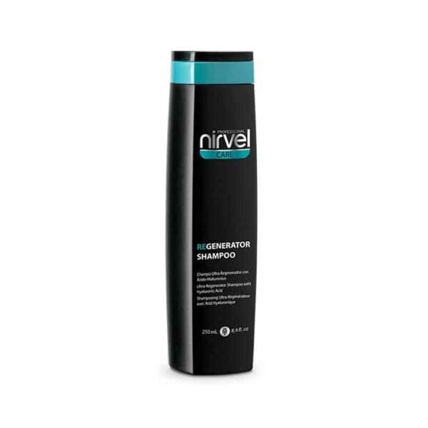 Este champú Ultra Regenerador de Nirvel, está compuesto por Ácido Hialurónico de bajo y alto peso molecular que aporta volumen, suavidad y mejora el brillo y la resistencia del cabello. La combinación de sus cuatro activos permite la creación de un film protector que impermeabiliza el cabello evitando que las partículas contaminantes se adhieran, sellando la cutícula.