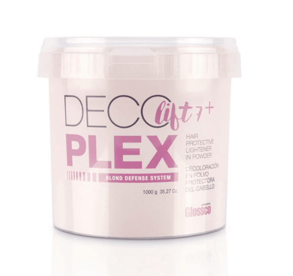 Decoplex es la decoloración de Glossco Professional formulada con la tecnología Plex, capaz de proteger y respetar el cabello, consiguiendo hasta 7 tonos de aclarado durante el proceso de la decoloración. La tecnología Plex actúa durante todo el proceso de decoloración para prevenir y reestructurar los daños en la fibra del cabello. Con efecto antirrotura, permite prolongar el tiempo de exposición sin dañar el cabello consiguiendo un color uniforme de raíces a puntas, neutralizando los tonos amarillentos no deseados. Protege la unión de las fibras capilares durante todo el proceso de aclarado, alcanzando resultados excelentes con un óptimo cuidado y respeto del cabello. Cabello más sano, fuerte, suave y brillante.