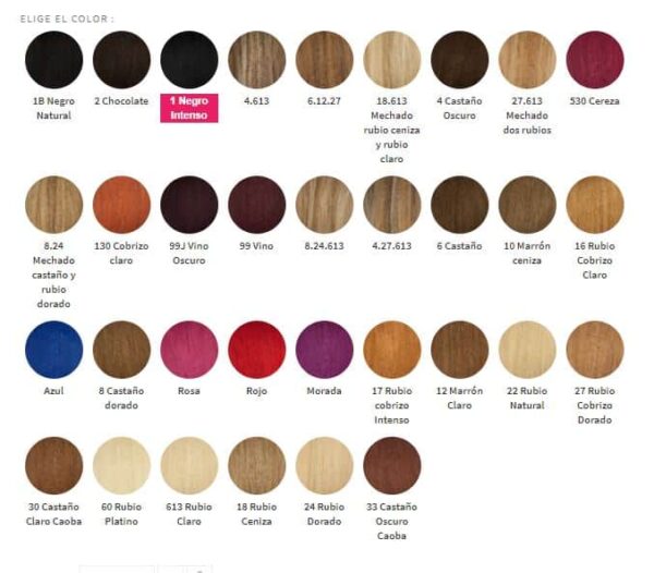 Extensiones de 50-55 cm. Incluye seis piezas de diferentes medidas para cubrir las diferentes zonas de la cabeza.