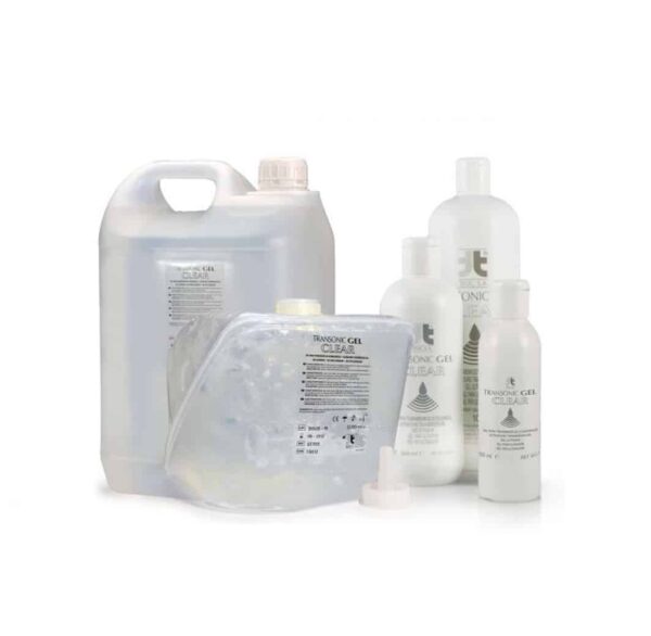 Gel conductor transparente Transonic fabricado por Telic indicado para depilación láser, Ipl y tratamientos estéticos.